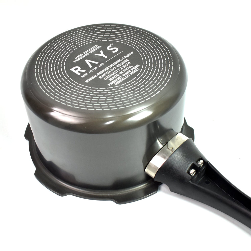 Aluminium Rays Black Beauty Pressure Cookers With Outer Lid Pressure Cooker, Heavy Bottom, Easy Open and Close, Healthy Cooking (Non-Induction Base) (2.5 Litres / 1-Year warranty, ISI Number :- 2347, BIS Number :- CM/L -7600164310