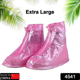4541 Plastic Shoes Cover Reusable Anti-Slip Boots Zippered Overshoes Covers Pink, Transparent Waterproof Snow Rain Boots for Kids/Adult Shoes, for Rainy Season (XL Size1 Pairs)
